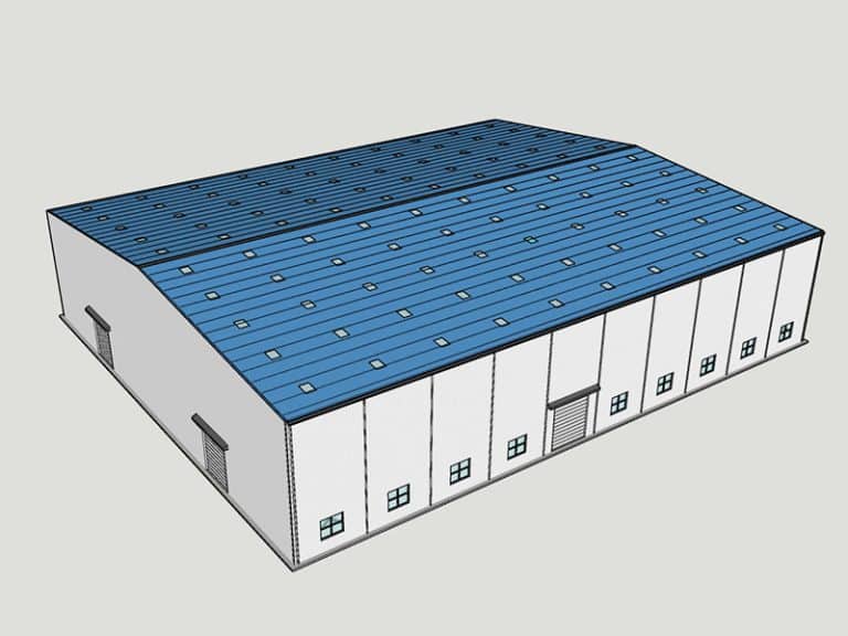 50m × 60m prefabricated steel warehouse provides two parallel ample space. It can be used for industrial manufacturing, offering ample room for two parallel production lines. It can also serve as a storage facility, with clearly defined areas for different types of goods.